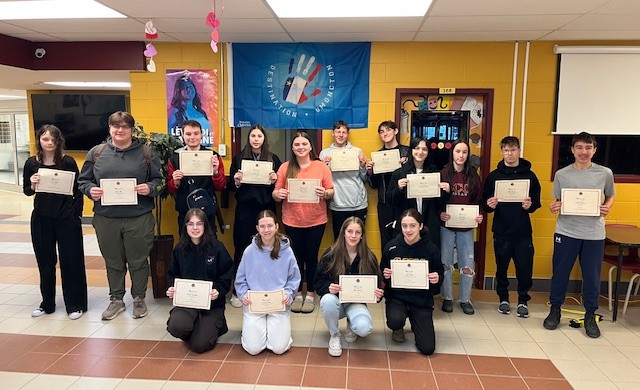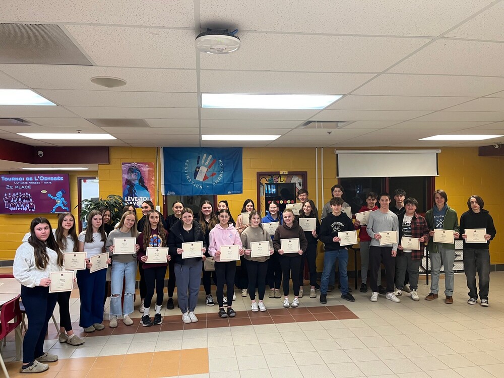 Les élèves nominés pour le mois de mars ont reçu leur certificat aujourd'hui. Chaque membre du personnel de l’ÉCC peut nominer un élève par mois. Les raisons pour nominer un élève sont nombreuses: rendement académique, beau geste, leadership (salle de classe, équipe sportive, comité, etc), progrès remarquable ou toute autre bonne raison qui mérite d’être soulignée.